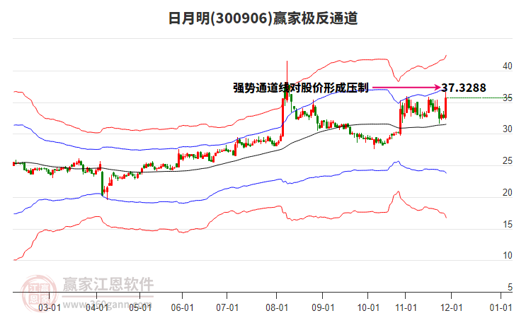 依據(jù)贏家江恩系統(tǒng)趨勢工具極反通道分析判斷日月明300906運行在生命線以上強勢區(qū)域,根據(jù)規(guī)則該股可短線、波段結(jié)合操作;結(jié)合物極必反的原理通過分鐘圖做盤中差價,應用口訣是:生命線上強勢走,生命線下難抬頭;紅黃兩條外軌線,壓力支撐顯勢頭。