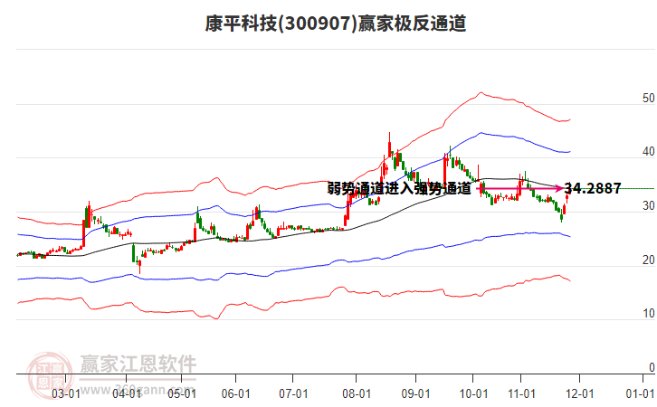今天300907康平科技最高價(jià)36.99上穿了贏家極反通道工具生命線,受到生命線強(qiáng)力壓制,最終收盤停留在在生命線與藍(lán)色下軌線上方的弱勢(shì)通道區(qū)域。300907康平科技近10個(gè)交易日漲幅13.82%。