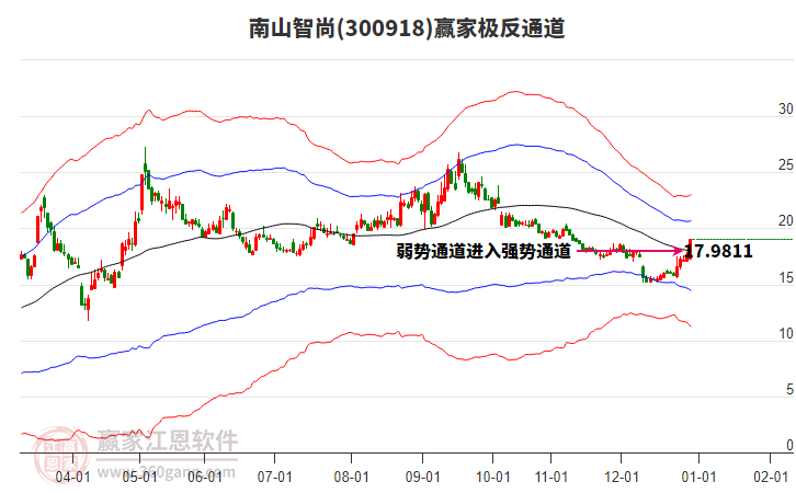 依據(jù)贏家江恩系統(tǒng)趨勢工具極反通道分析判斷南山智尚300918運行在生命線以上強(qiáng)勢區(qū)域,根據(jù)規(guī)則該股可短線、波段結(jié)合操作;結(jié)合物極必反的原理通過分鐘圖做盤中差價,應(yīng)用口訣是:生命線上強(qiáng)勢走,生命線下難抬頭;紅黃兩條外軌線,壓力支撐顯勢頭。