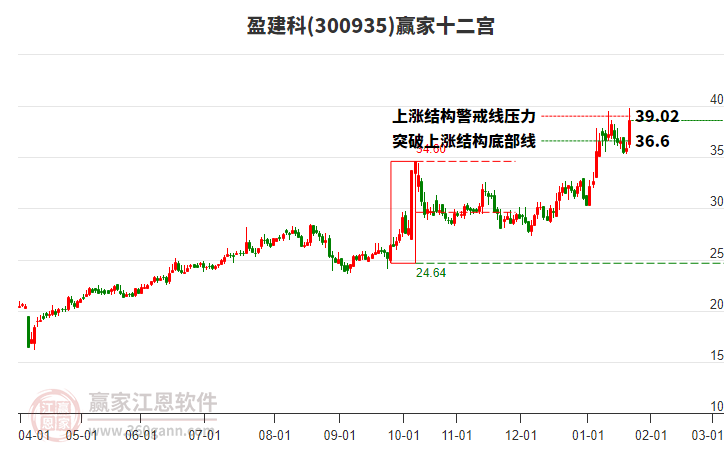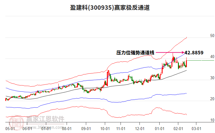 300935盈建科最高價(jià)上穿藍(lán)色外軌線 漲幅8.68%