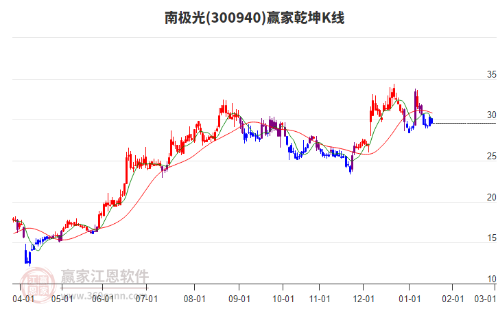 南極光(300940)處于贏家江恩多頭主線形態(tài),1月19日發(fā)出江恩筑頂信號后,經(jīng)過4日,今日再次發(fā)出江恩底分型并發(fā)出江恩筑底信號,中長期多頭趨勢依舊保持。南極光今日低開,截止目前小幅上漲4.47%,K