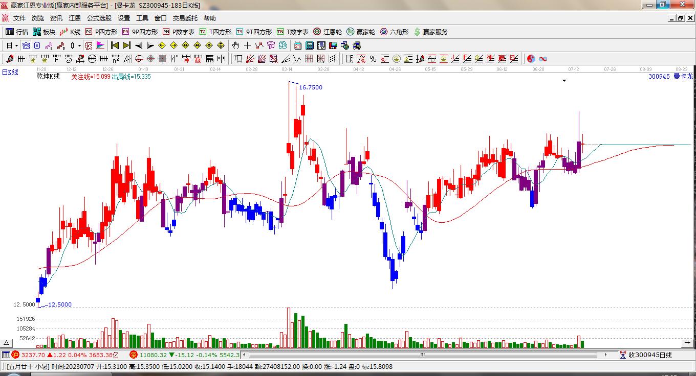 曼卡龍(300945)處于贏家江恩多頭主線形態(tài),從12月31日形成中期底分型后,行情經(jīng)歷一波上漲,突破前高形成中期初次筑底信號,長期處于多頭回調(diào)趨勢。曼卡龍今日高開0.17元,收上下影小陽線,呈上漲走