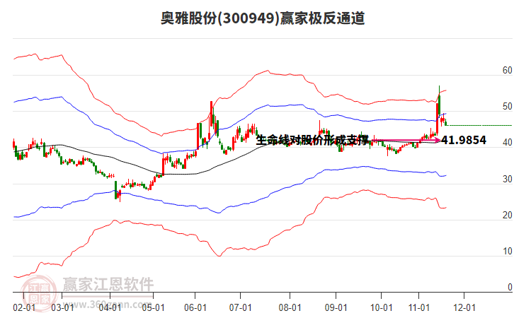 依據(jù)贏家江恩系統(tǒng)趨勢(shì)工具極反通道分析判斷奧雅股份300949運(yùn)行在生命線以上強(qiáng)勢(shì)區(qū)域,根據(jù)規(guī)則該股可短線、波段結(jié)合操作;結(jié)合物極必反的原理通過(guò)分鐘圖做盤(pán)中差價(jià),應(yīng)用口訣是:生命線上強(qiáng)勢(shì)走,生命線下難抬頭;紅黃兩條外軌線,壓力支撐顯勢(shì)頭。