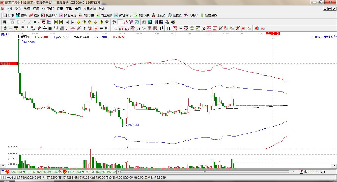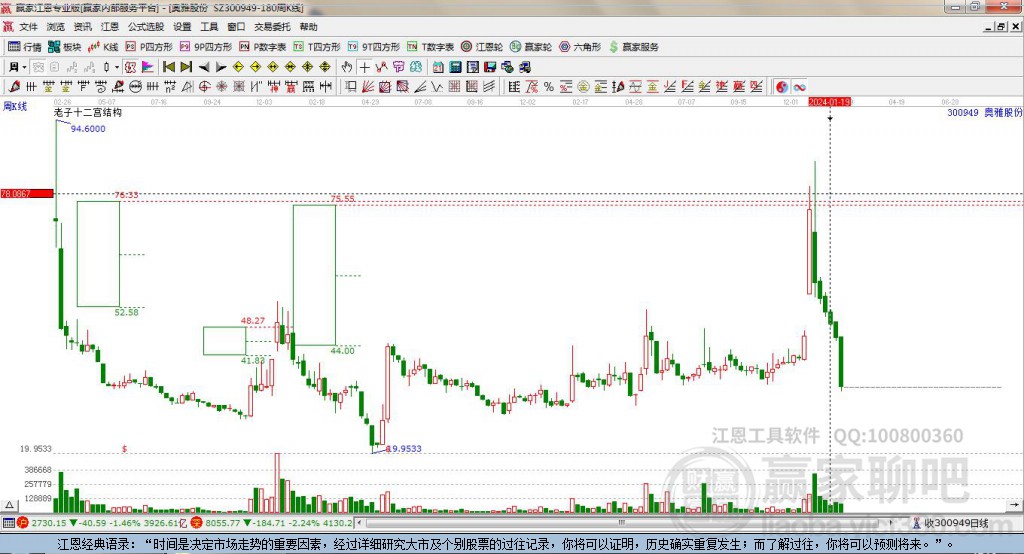 300949奧雅股份處于贏家江恩多頭主線形態(tài),從1月8日形成底分型后持續(xù)上攻,今日突破前高形成初次江恩筑底信號(hào),中長期目前都處于回調(diào)中。