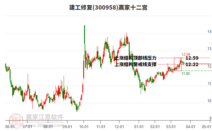 建工修復(fù)(300958)處于贏家江恩多頭主線形態(tài),今日重心上移,短期持續(xù)上漲,從12月17日形成中期底分型后,行情經(jīng)歷一波上漲,突破前高形成中期初次筑底信號(hào),長(zhǎng)期處于多頭上漲趨勢(shì)。建工修復(fù)截至目前K線