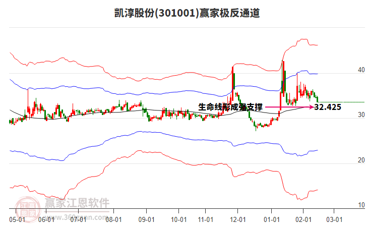 依據(jù)贏家江恩系統(tǒng)趨勢工具極反通道分析判斷凱淳股份301001運(yùn)行在生命線以上強(qiáng)勢區(qū)域,根據(jù)規(guī)則該股可短線、波段結(jié)合操作;結(jié)合物極必反的原理通過分鐘圖做盤中差價(jià),應(yīng)用口訣是:生命線上強(qiáng)勢走,生命線下難抬頭;紅黃兩條外軌線,壓力支撐顯勢頭。