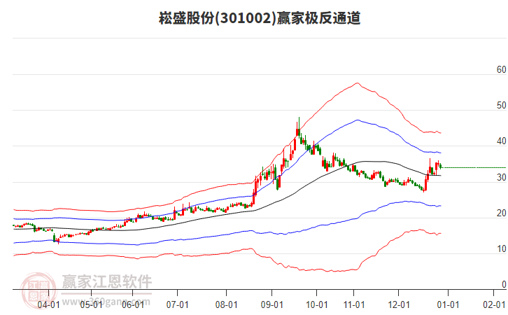 依據(jù)贏家江恩系統(tǒng)趨勢(shì)工具極反通道分析判斷崧盛股份301002運(yùn)行在生命線以下弱勢(shì)區(qū)域,根據(jù)規(guī)則該股短線輕倉(cāng)參與,股價(jià)跌至弱勢(shì)外軌線后波段再結(jié)合其它工具信號(hào)建倉(cāng)。應(yīng)用口訣是:生命線上強(qiáng)勢(shì)走,生命線下難抬頭;紅黃兩條外軌線,壓力支撐顯勢(shì)頭。