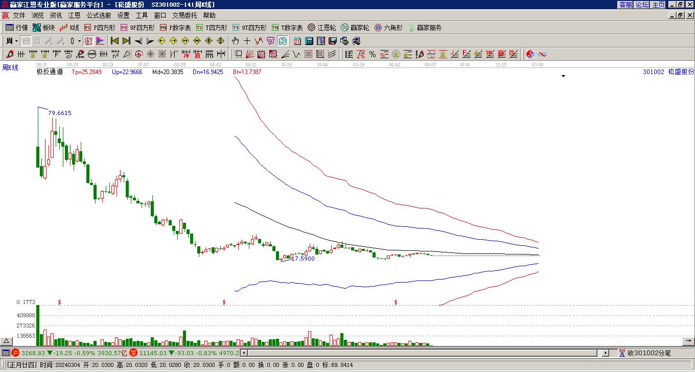 周一301002崧盛股份最高價(jià)40.99挑戰(zhàn)了贏家極反通道工具藍(lán)色外軌線,受到藍(lán)色外軌線強(qiáng)力壓制,最終收盤停留在在藍(lán)色外軌線與生命線上方的強(qiáng)勢通道區(qū)域。301002崧盛股份近10個(gè)交易日漲幅3.45%