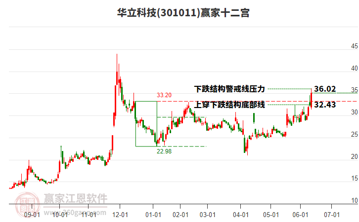 依據(jù)贏家江恩系統(tǒng)趨勢工具極反通道分析判斷華立科技301011運行在生命線以上強勢區(qū)域,根據(jù)規(guī)則該股可短線、波段結(jié)合操作;結(jié)合物極必反的原理通過分鐘圖做盤中差價,應(yīng)用口訣是:生命線上強勢走,生命線下難抬頭;紅黃兩條外軌線,壓力支撐顯勢頭。