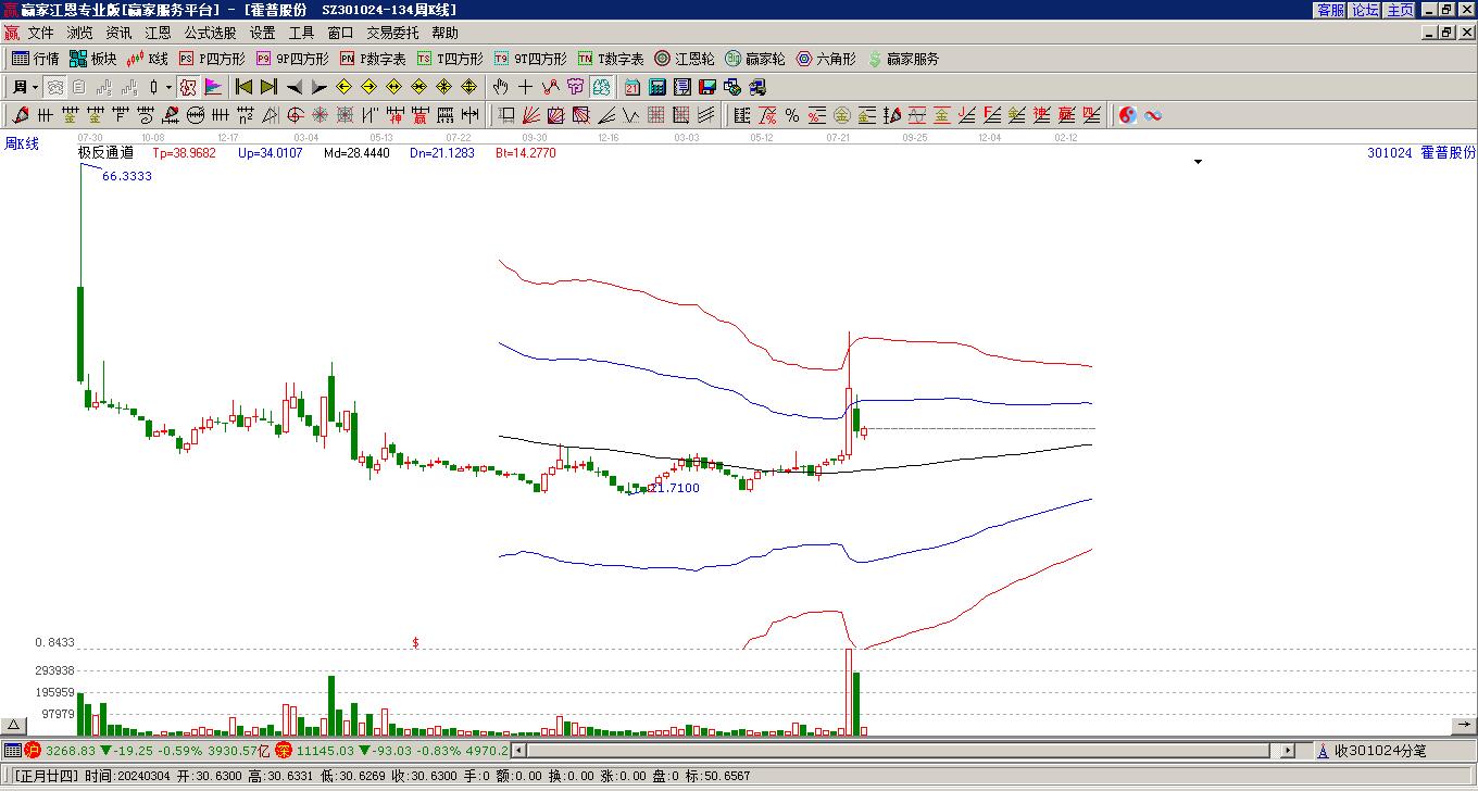 在2月第1周(2月2日-2月6日)中霍普股份周漲幅為微漲0.66%。本周最高價為39.63元,出現(xiàn)在星期四,最低價為37.21元,出現(xiàn)在2月6日。