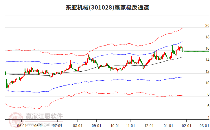 當(dāng)天東亞機(jī)械最高價15.72挑戰(zhàn)了贏家極反通道工具藍(lán)色外軌線,受到藍(lán)色外軌線強(qiáng)力壓制,最終收盤停留在在藍(lán)色外軌線與生命線上方的強(qiáng)勢通道區(qū)域。東亞機(jī)械近10個交易日漲幅15.85%。