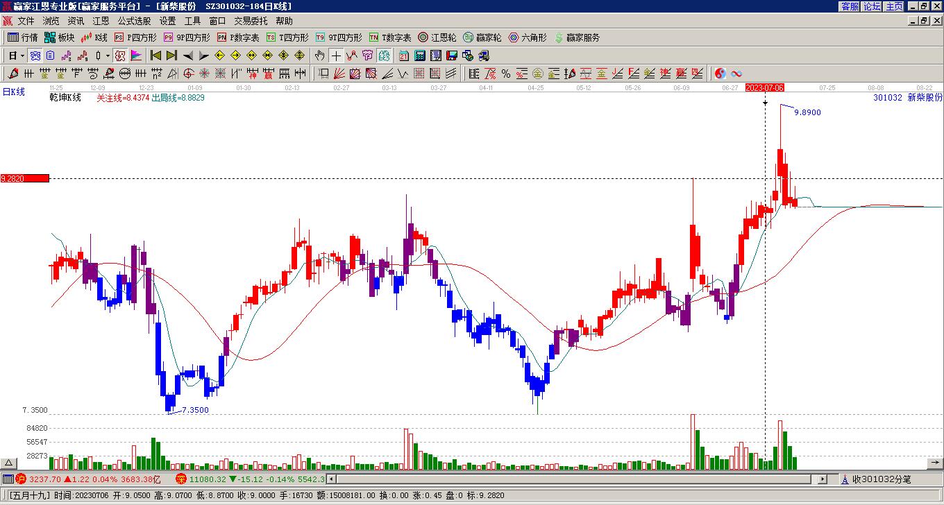 新柴股份301032最高價挑戰(zhàn)藍色外軌線 小幅上漲3.82%