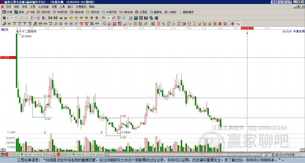 中集車輛處于贏家江恩空頭中期反彈形態(tài),12月29日發(fā)出江恩筑頂信號后,經過18日,今日再次發(fā)出江恩底分型并發(fā)出江恩筑底信號,中長線均在空頭下跌趨勢中。中集車輛截至目前K線為上影小陰線,此K線說明盤中多