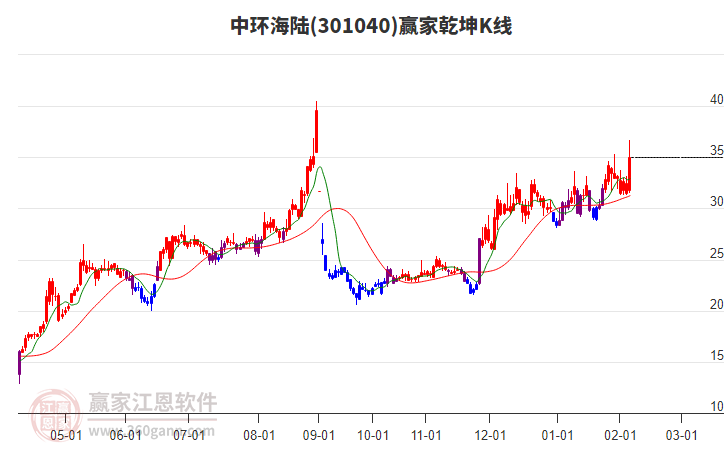 中環(huán)海陸301040低開收陽(yáng)線,今日收盤價(jià)為37.99