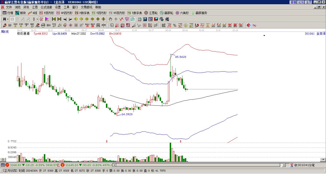 金百澤(301041)處于贏家江恩多頭次主線形態(tài),從1月19日形成頂分型后持續(xù)下跌,重心下移,今日跌破前低形成短期初次筑頂信號,短期多頭趨勢已被破壞,中期多頭趨勢延續(xù),但長期處于回調(diào)中。金百澤今日跳空