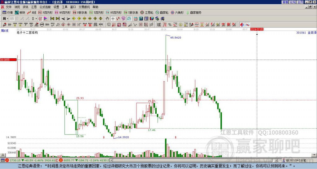 金百澤處于贏家江恩多頭中期回調(diào)形態(tài),今日重心上移,短期持續(xù)上漲,1月5日發(fā)出中期江恩筑底信號后,經(jīng)過35日,今日形成中期筑頂信號,若持續(xù)下跌,觸發(fā)長期筑頂信號,金百澤將轉(zhuǎn)為空頭主線。金百澤今日跳空高開