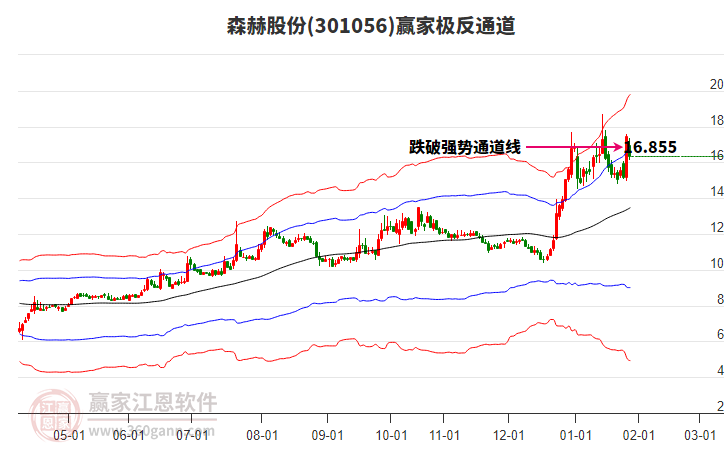 當(dāng)天森赫股份301056最高價(jià)18.7挑戰(zhàn)了贏家極反通道工具上方紅色外軌線,受到上方紅色外軌線強(qiáng)力壓制,最終收盤停留在在上方紅色外軌線與藍(lán)色外軌線上方的超強(qiáng)通道區(qū)域。森赫股份301056近10個(gè)交易日