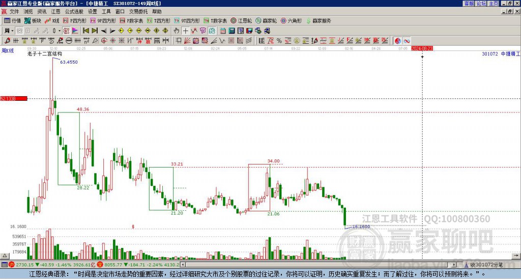 301072中捷精工處于贏家江恩多頭中期回調(diào)形態(tài),11月19日發(fā)出江恩筑底信號后,經(jīng)過86日,今日形成短期筑頂信號,短期多頭趨勢已被破壞,中長線均在空頭下跌趨勢中。中捷精工今日高開0.0元,收下影小陽