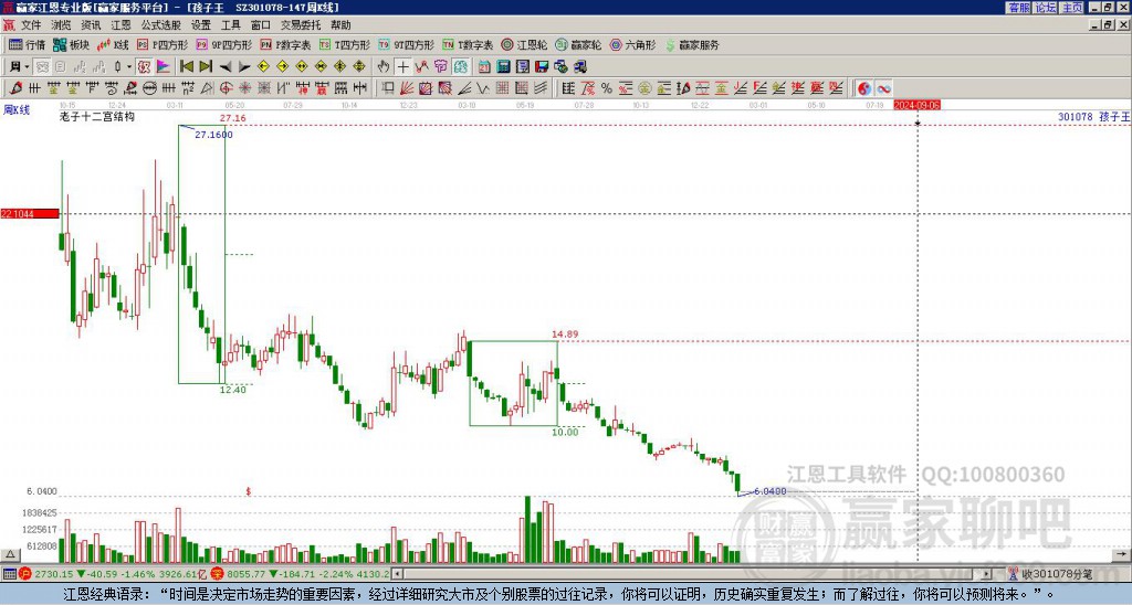 依據(jù)贏家江恩乾坤K線工具展示,目前股價處于關(guān)注線下方,本周K線以陰線收盤,收盤價處于出局線下方,近期1月16日出現(xiàn)高點,12月12日出現(xiàn)低點,近期圍繞關(guān)注線震蕩,近4周出現(xiàn)短線下行,依據(jù)贏家江恩乾坤K線工具展示,工具顯示依舊短線看空。
