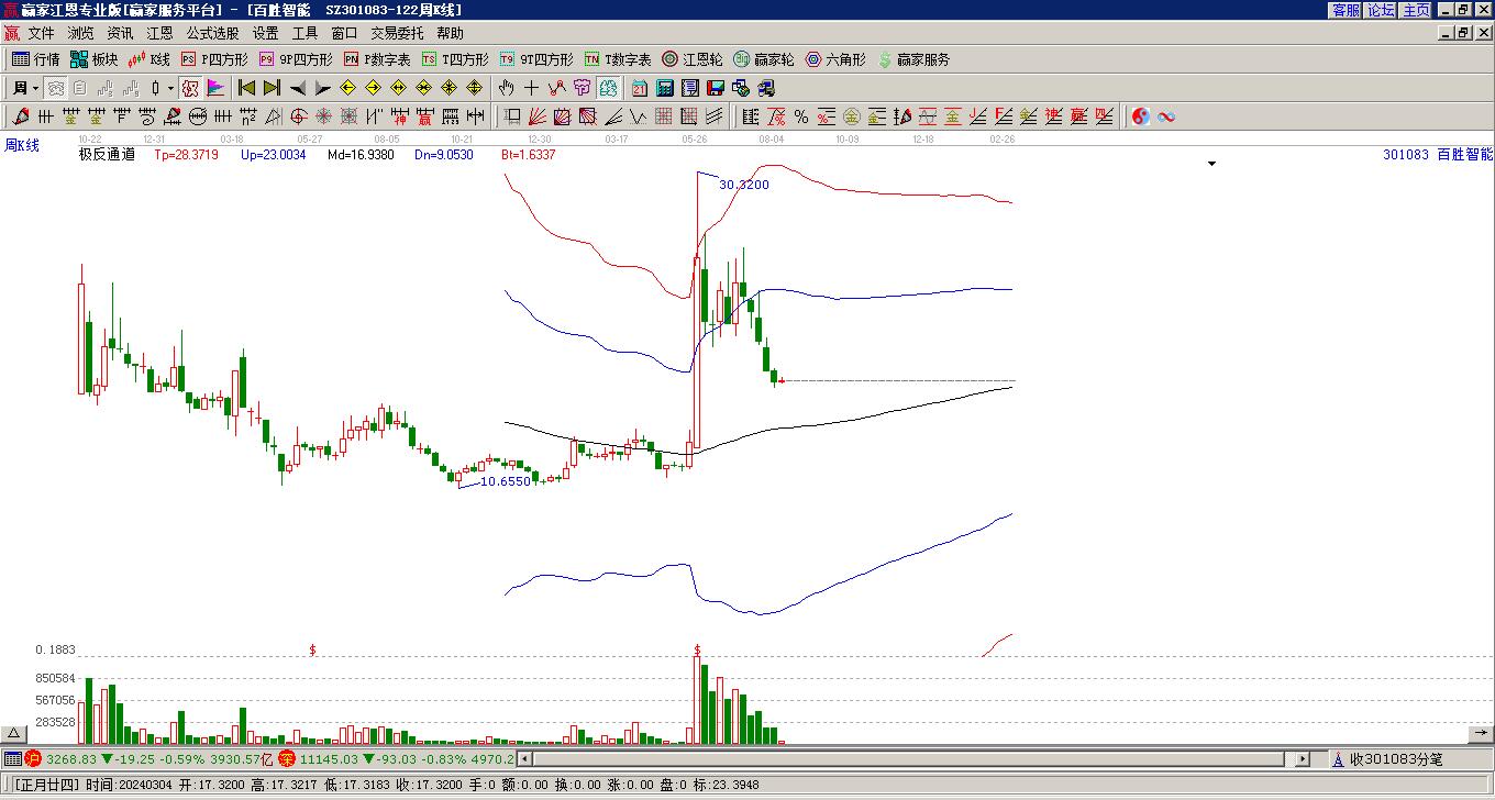 百勝智能301083形成殘陽鋪水形態(tài),充電樁概念小幅下跌0.28%