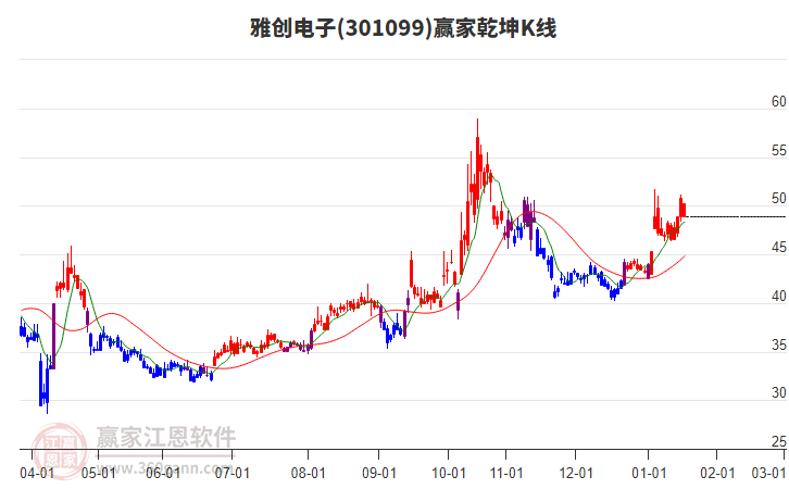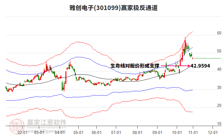 依據(jù)贏家江恩系統(tǒng)趨勢(shì)工具極反通道分析判斷雅創(chuàng)電子301099運(yùn)行在生命線以上強(qiáng)勢(shì)區(qū)域,根據(jù)規(guī)則該股可短線、波段結(jié)合操作;結(jié)合物極必反的原理通過(guò)分鐘圖做盤(pán)中差價(jià),應(yīng)用口訣是:生命線上強(qiáng)勢(shì)走,生命線下難抬頭;紅黃兩條外軌線,壓力支撐顯勢(shì)頭。