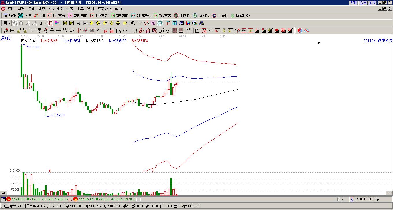 在1月第3周(1月12日-1月16日)中301106駿成科技周漲幅為微漲2.93%。本周最高價(jià)為32.15元,出現(xiàn)在1月16日,最低價(jià)為30.6元,出現(xiàn)在星期三。