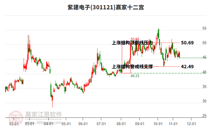 紫建電子近期高點(diǎn)51.99持續(xù)下跌,漲幅回落17.81% 電氣設(shè)備概念近11天上漲2.57%