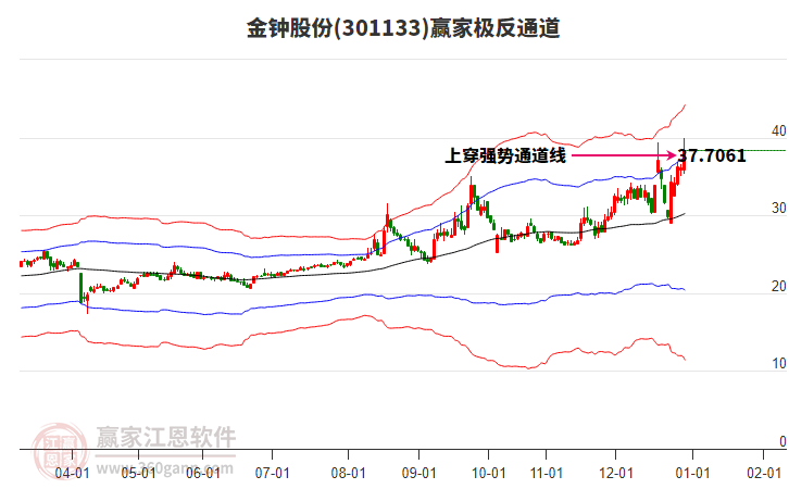 1月27日金鐘股份最高價(jià)45.95上穿了贏家極反通道工具藍(lán)色外軌線,受到藍(lán)色外軌線強(qiáng)力壓制,最終收盤停留在在藍(lán)色外軌線與生命線上方的強(qiáng)勢(shì)通道區(qū)域。金鐘股份近10個(gè)交易日漲幅13.37%。