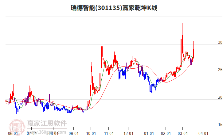 瑞德智能(301135)處于贏家江恩多頭主線形態(tài),今日重心上移,短期持續(xù)上漲,從12月17日形成中期底分型后,行情經(jīng)歷一波上漲,突破前高形成中期初次筑底信號,長期處于多頭上漲趨勢。瑞德智能今日低開,截