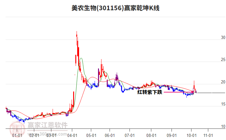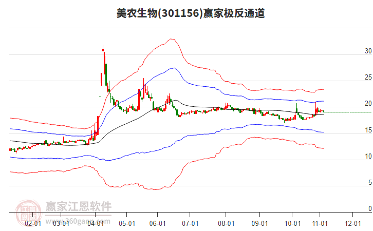 依據(jù)贏家江恩系統(tǒng)趨勢工具極反通道分析判斷美農(nóng)生物301156運行在生命線以下弱勢區(qū)域,根據(jù)規(guī)則該股短線輕倉參與,股價跌至弱勢外軌線后波段再結(jié)合其它工具信號建倉。應用口訣是:生命線上強勢走,生命線下難抬頭;紅黃兩條外軌線,壓力支撐顯勢頭。