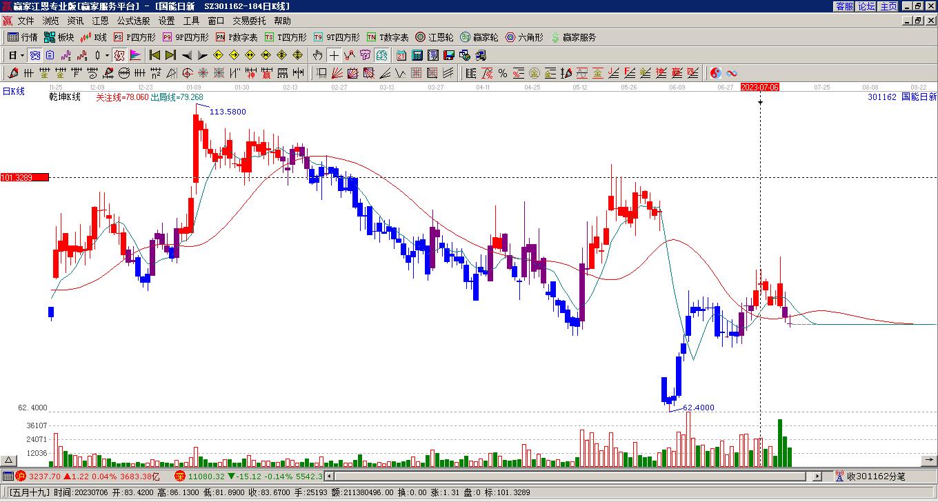301162國(guó)能日新處于贏家江恩多頭次主線形態(tài),從11月13日形成頂分型后持續(xù)下跌,重心下移,今日跌破前低形成短期初次筑頂信號(hào),短期多頭趨勢(shì)已被破壞,中長(zhǎng)期多頭趨勢(shì)依舊保持。國(guó)能日新目前K線為下影小陰