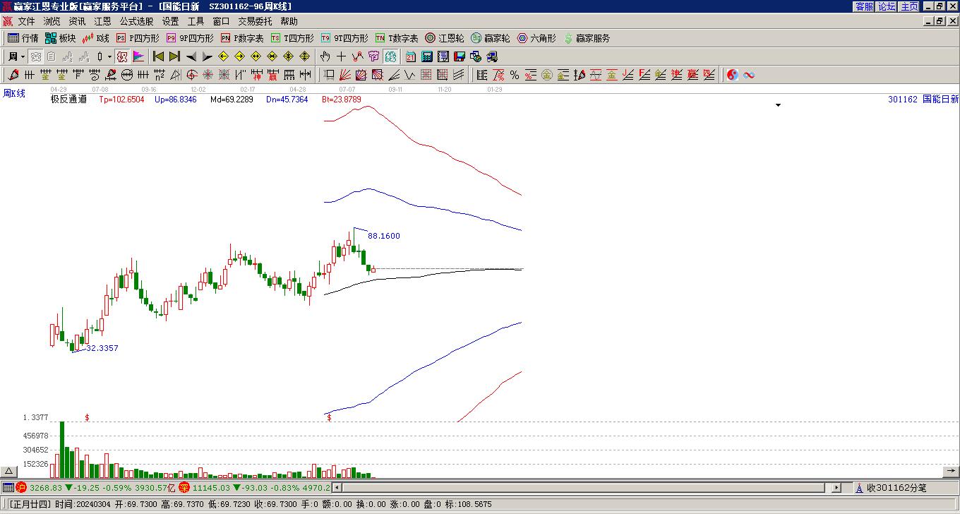 301162國(guó)能日新本周股價(jià)出現(xiàn)下跌,本周微跌2.27%,近5個(gè)交易日股價(jià)呈下跌走向,本周最高價(jià)為68.68元,出現(xiàn)在1月27日,最低價(jià)為63.34元,出現(xiàn)在星期一
