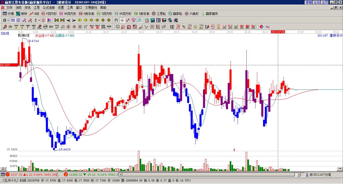 周四建研設(shè)計(jì)301167最高價18.73挑戰(zhàn)了贏家極反通道工具藍(lán)色外軌線,受到藍(lán)色外軌線強(qiáng)力壓制,最終收盤停留在在藍(lán)色外軌線與生命線上方的強(qiáng)勢通道區(qū)域。建研設(shè)計(jì)301167近10個交易日漲幅3.09%