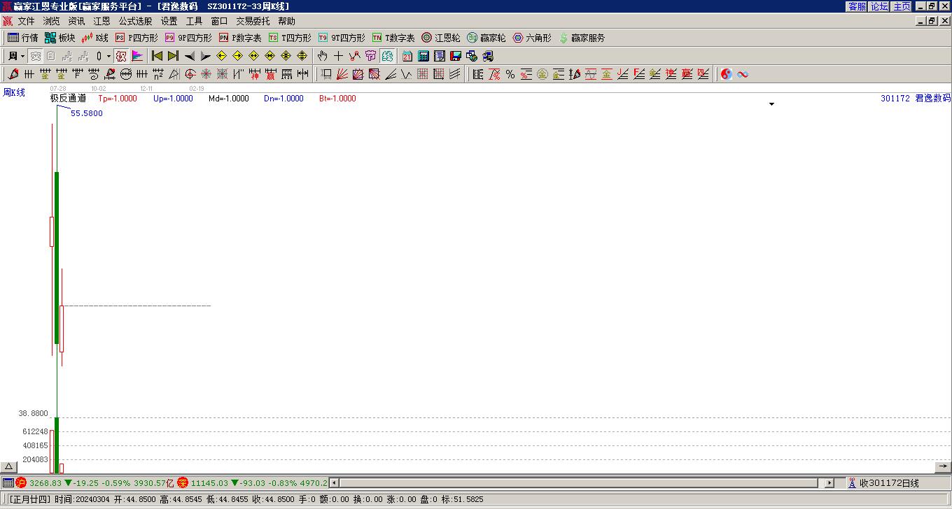 君逸數(shù)碼處于贏家江恩多頭中期回調(diào)形態(tài),12月4日發(fā)出江恩筑頂信號后,經(jīng)過32日,今日再次發(fā)出江恩底分型并發(fā)出江恩筑底信號,中期多頭反彈趨勢延續(xù),但長期處于回調(diào)中。君逸數(shù)碼今日跳空高開,截止目前K線穿頭