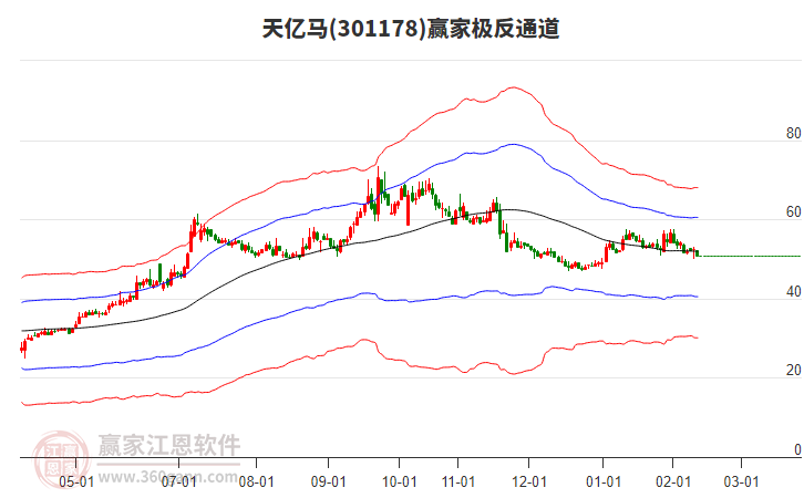 依據(jù)贏家江恩系統(tǒng)趨勢工具極反通道分析判斷天億馬301178運(yùn)行在生命線以上強(qiáng)勢區(qū)域,根據(jù)規(guī)則該股可短線、波段結(jié)合操作;結(jié)合物極必反的原理通過分鐘圖做盤中差價(jià),應(yīng)用口訣是:生命線上強(qiáng)勢走,生命線下難抬頭;紅黃兩條外軌線,壓力支撐顯勢頭。