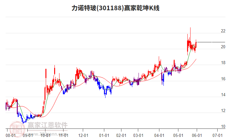 依據(jù)贏家江恩系統(tǒng)趨勢工具極反通道分析判斷力諾特玻301188運行在生命線以上強勢區(qū)域,根據(jù)規(guī)則該股可短線、波段結(jié)合操作;結(jié)合物極必反的原理通過分鐘圖做盤中差價,應(yīng)用口訣是:生命線上強勢走,生命線下難抬頭;紅黃兩條外軌線,壓力支撐顯勢頭。