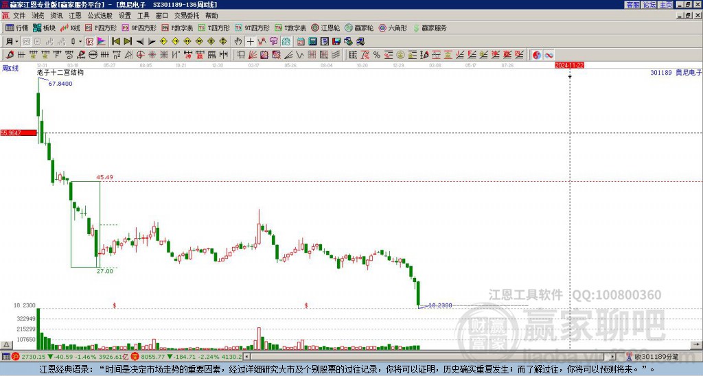 依據(jù)贏家十二宮結(jié)構(gòu)模型工具展示,本周股價下穿前期2022年5月6日形成的下跌結(jié)構(gòu)頂部線,以陰線收盤,下跌10.84%,近期高點(diǎn)為2月6日,跌至本周,持續(xù)1周,跌幅15.02%。依據(jù)贏家十二宮多空能量守恒規(guī)則,本周股價下跌若不能收復(fù)下跌結(jié)構(gòu)頂部線45.49,多方能量持續(xù)萎縮,空方動能充足,將會進(jìn)一步下探警戒線36.25,若能再次收復(fù)下跌結(jié)構(gòu)頂部線,有望再度展開上攻。