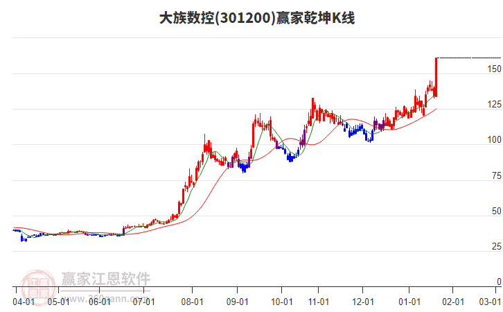 今日大族數(shù)控301200挑戰(zhàn)上方紅色外軌線 以上影中陽線收盤
