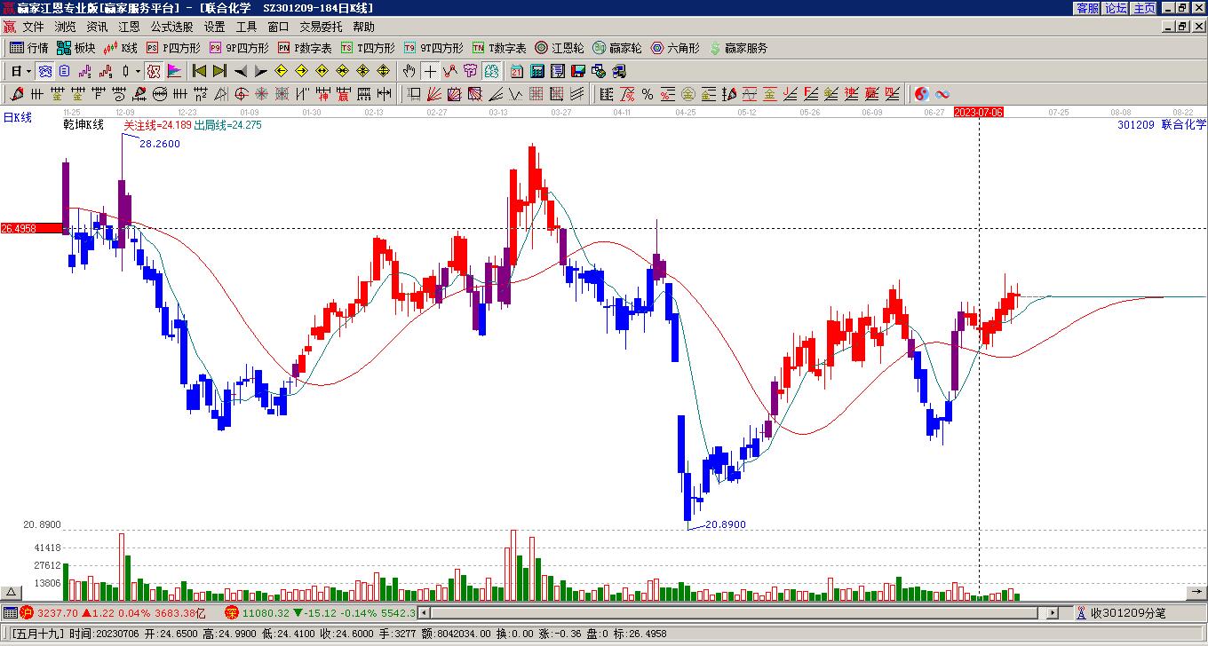 10月9日301209聯(lián)合化學挑戰(zhàn)上方紅色外軌線 以上影小陽線收盤