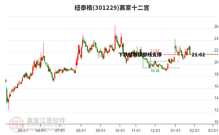 301229紐泰格處于贏家江恩多頭主線形態(tài),從1月15日形成底分型后持續(xù)上攻,今日突破前高形成初次江恩筑底信號,中期雖然處于回調(diào)中,但長期多頭趨勢延續(xù)。紐泰格截至目前K線為上下影小陰線,在經(jīng)過一波上漲