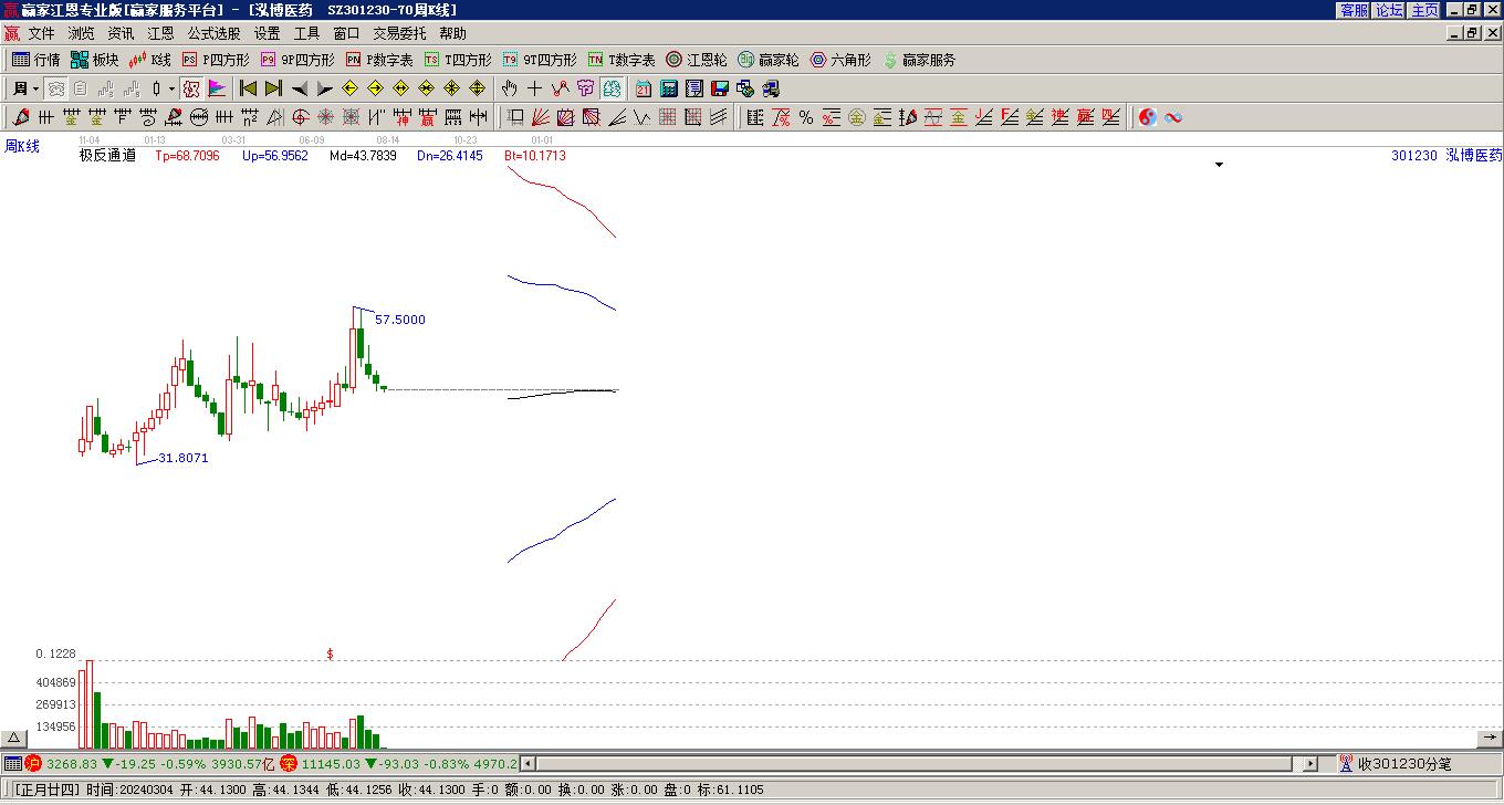 當(dāng)天泓博醫(yī)藥301230最高價(jià)50.4上穿了贏家極反通道工具上方紅色外軌線,受到上方紅色外軌線強(qiáng)力壓制,最終收盤停留在在上方紅色外軌線與藍(lán)色外軌線上方的超強(qiáng)通道區(qū)域。泓博醫(yī)藥301230近10個(gè)交易日