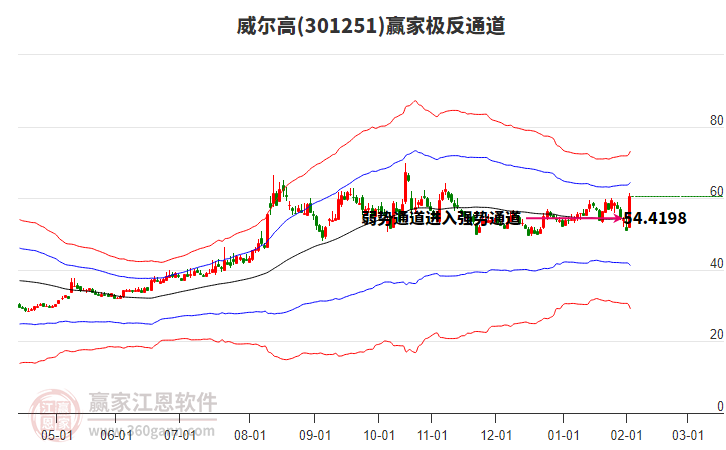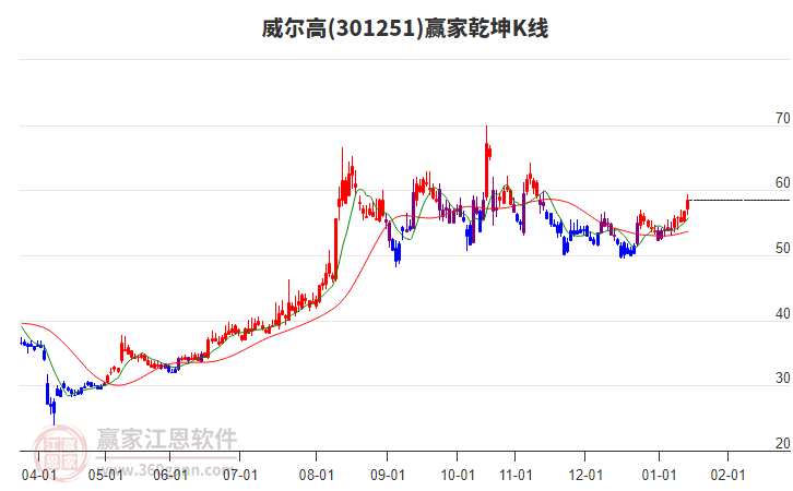威爾高最高價(jià)上穿藍(lán)色外軌線 小幅上漲2.45%