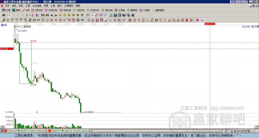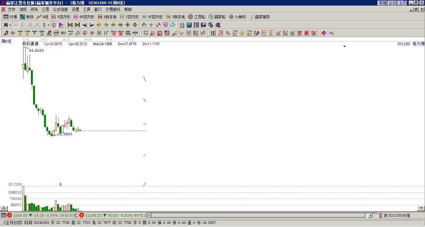 格力博(301260)處于贏家江恩多頭中期回調(diào)形態(tài),從12月17日形成底分型后持續(xù)上攻,今日突破前高形成初次江恩筑底信號,中期多頭反彈趨勢延續(xù),但長期處于回調(diào)中。格力博12月29日K線以上影中陽線收盤