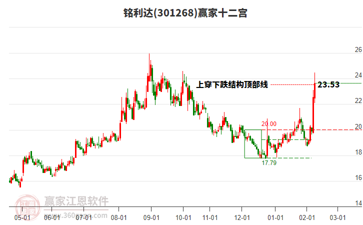 301268銘利達(dá)低開收陽線,當(dāng)天大幅上漲13.36%