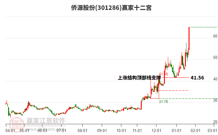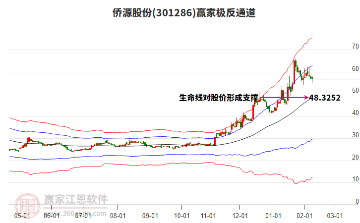 依據(jù)贏家江恩系統(tǒng)趨勢工具極反通道分析判斷僑源股份301286運行在生命線以下弱勢區(qū)域,根據(jù)規(guī)則該股短線輕倉參與,股價跌至弱勢外軌線后波段再結(jié)合其它工具信號建倉。應(yīng)用口訣是:生命線上強勢走,生命線下難抬頭;紅黃兩條外軌線,壓力支撐顯勢頭。
