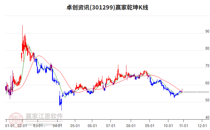卓創(chuàng)資訊301299最高價挑戰(zhàn)藍(lán)色外軌線 小幅上漲5.4%