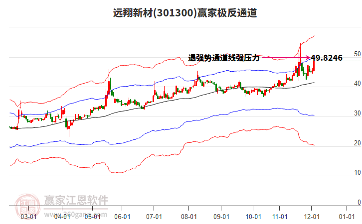 目前遠翔新材301300最高價54.66上穿了贏家極反通道工具上方紅色外軌線,受到上方紅色外軌線強力壓制,最終收盤停留在在上方紅色外軌線與藍色外軌線上方的超強通道區(qū)域。遠翔新材301300近10個交易