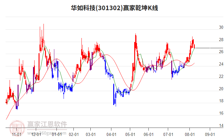 目前華如科技最高價30.26挑戰(zhàn)了贏家極反通道工具上方紅色外軌線,受到上方紅色外軌線強力壓制,最終收盤停留在在上方紅色外軌線與藍(lán)色外軌線上方的超強通道區(qū)域。華如科技近10個交易日漲幅23.04%。