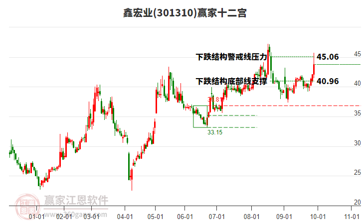 依據(jù)贏家江恩系統(tǒng)趨勢工具極反通道分析判斷鑫宏業(yè)301310運行在生命線以上強勢區(qū)域,根據(jù)規(guī)則該股可短線、波段結(jié)合操作;結(jié)合物極必反的原理通過分鐘圖做盤中差價,應(yīng)用口訣是:生命線上強勢走,生命線下難抬頭;紅黃兩條外軌線,壓力支撐顯勢頭。