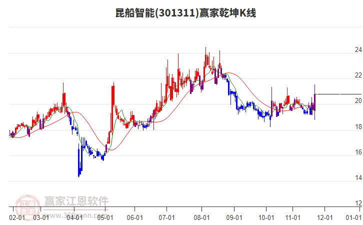 當(dāng)天昆船智能收盤(pán)價(jià)為19.11,微跌0.16%,近期高點(diǎn)是21.76元,時(shí)間是2025年11月24日,到現(xiàn)在已經(jīng)下跌11天,共跌去了2.65元,跌幅為13.87%。
